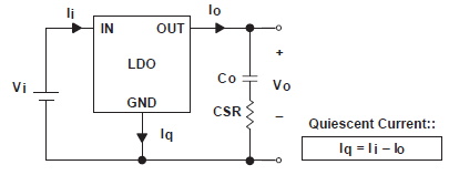 Quiescent Currernt 혹은 Ground Current는 입력 전류와 출력 전류의 차이를 뜻한다.