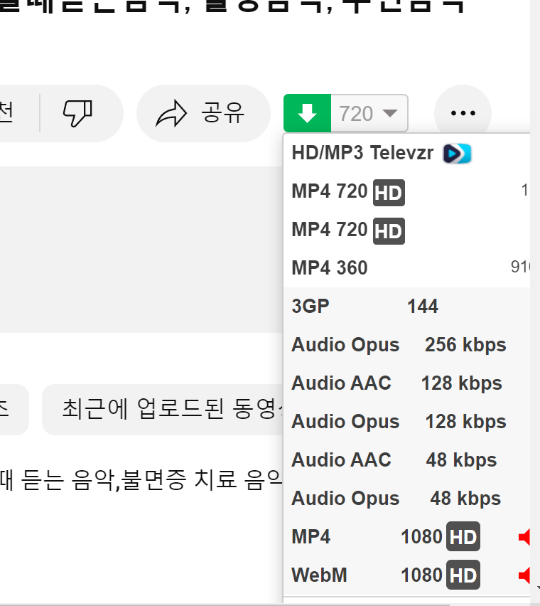 이렇게 1080까지도 가능합니다. 음악파일로 받아서 합치면 1080까지도 쓸수있죠.