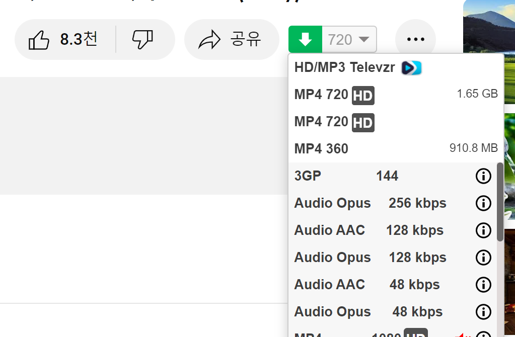 유튜브 아무 영상에 들어가면 이렇게 버튼이 생겨져 있습니다.