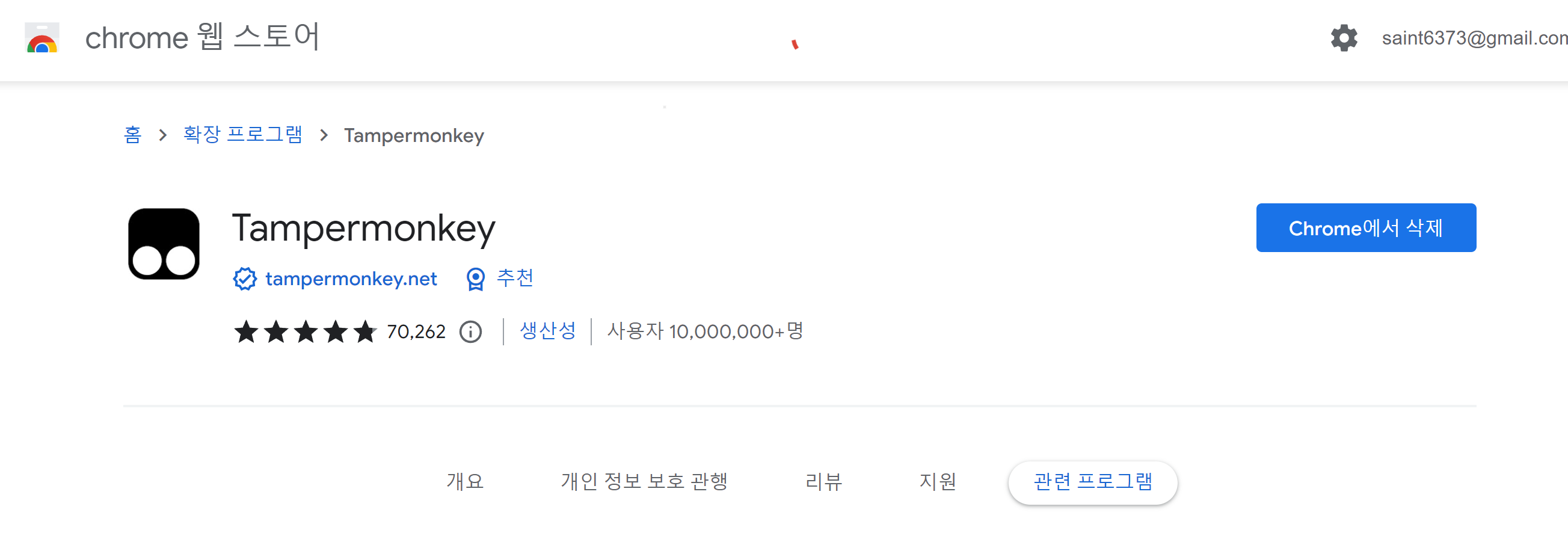 1단계: 아래 링크에서 Tampermonkey 구글 크롬에 추가