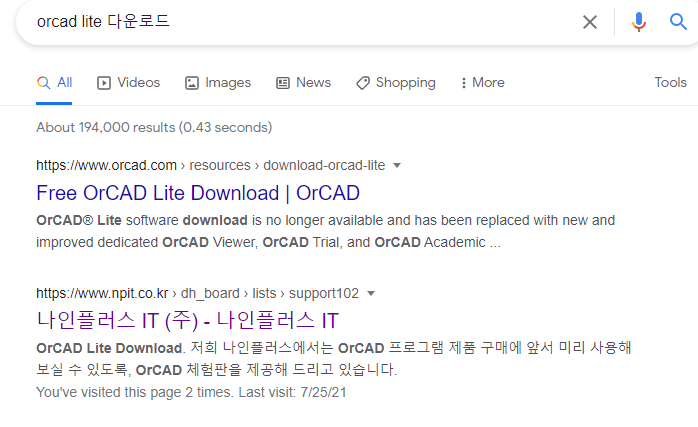 1 단계: 구글에 'orcad lite 다운로드' 검색 or 아래 링크 클릭
