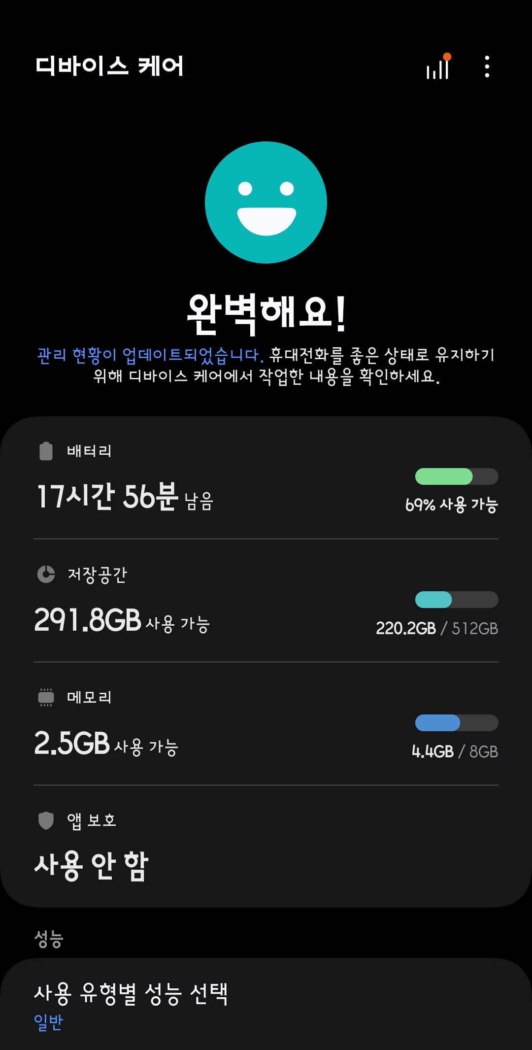 먼저 삼성은 디바이스 케어 라는 앱이 있습니다.