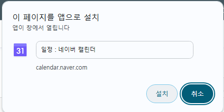 구글 캘린더도 같은 방식으로 앱으로 만들 수 있어요.