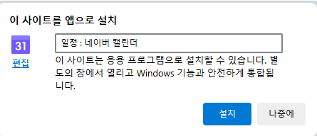 그리고 앱 -> 이 사이트를 앱으로 설치