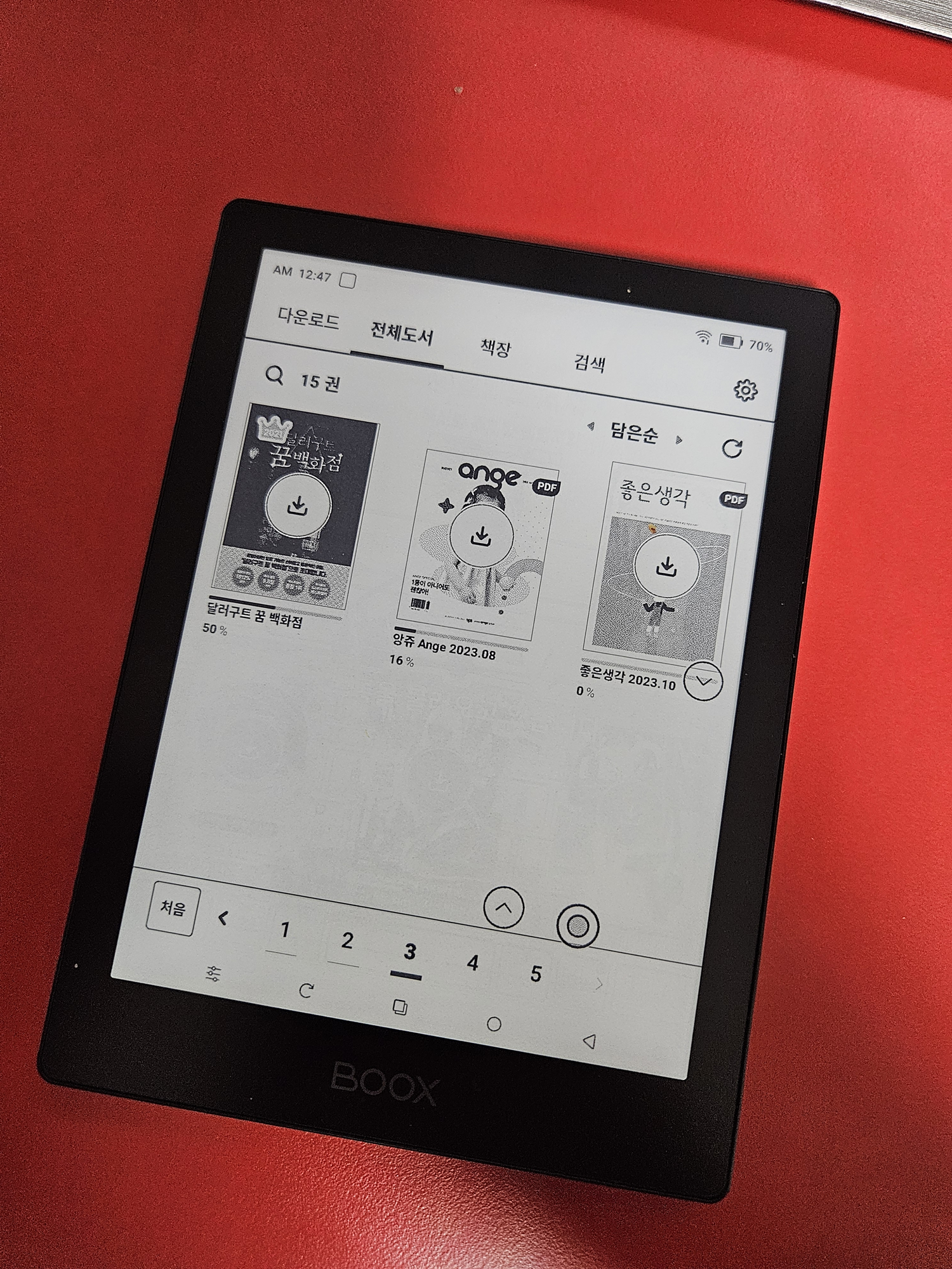 참고로 새로운 책 검색은 안됩니다. 기존 밀리의서재 앱에서 책장에 담아주시고 E-ink 앱에서는 다운받아서 보시면 됩니다.