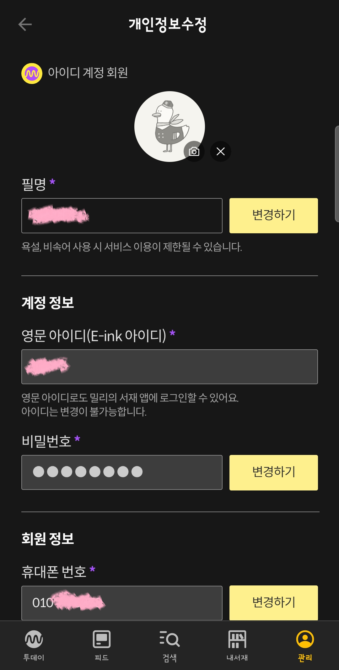 4단계. 밀리의 서재 E-ink 뷰어 계정 등록