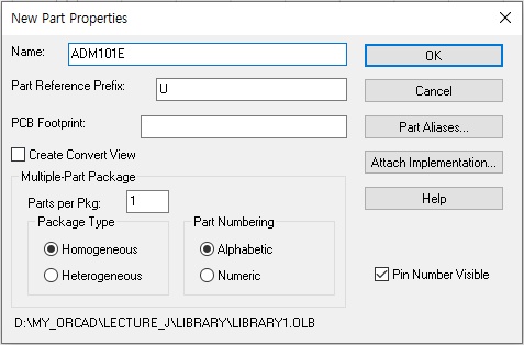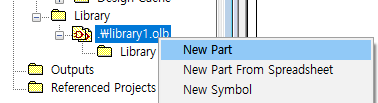 생성된 library1.olb 우클릭 후 New Part 클릭