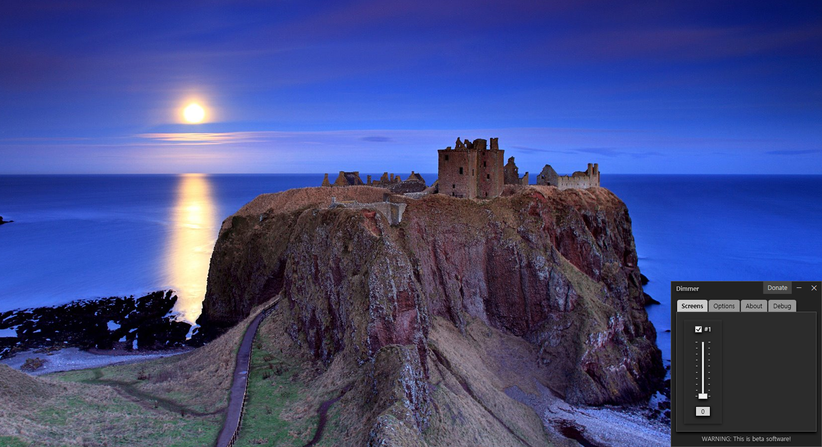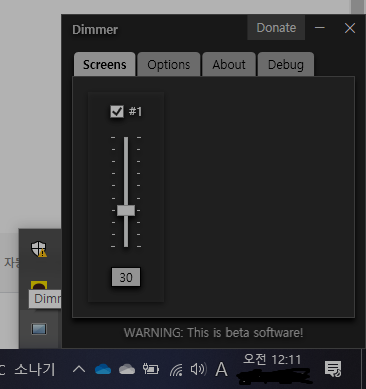 이 프로그램을 이용하면, 모니터와 윈도위에서 설정할 수 있는 최저 밝기 이하로 더 어둡게 설정하는 것이 가능합니다.