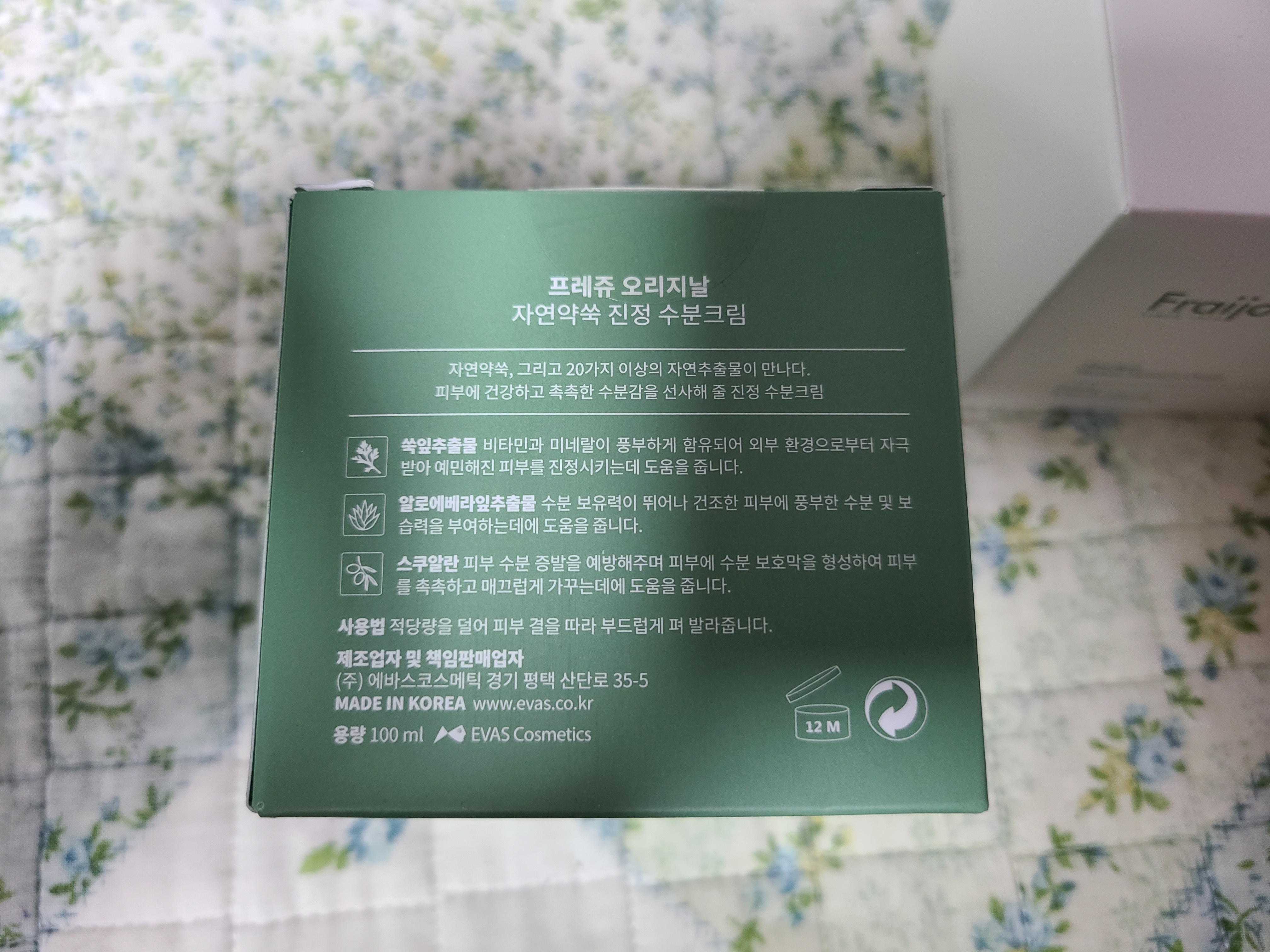 프레쥬에서 만든 어성초와 자연 약쑥 수분크림이에요.