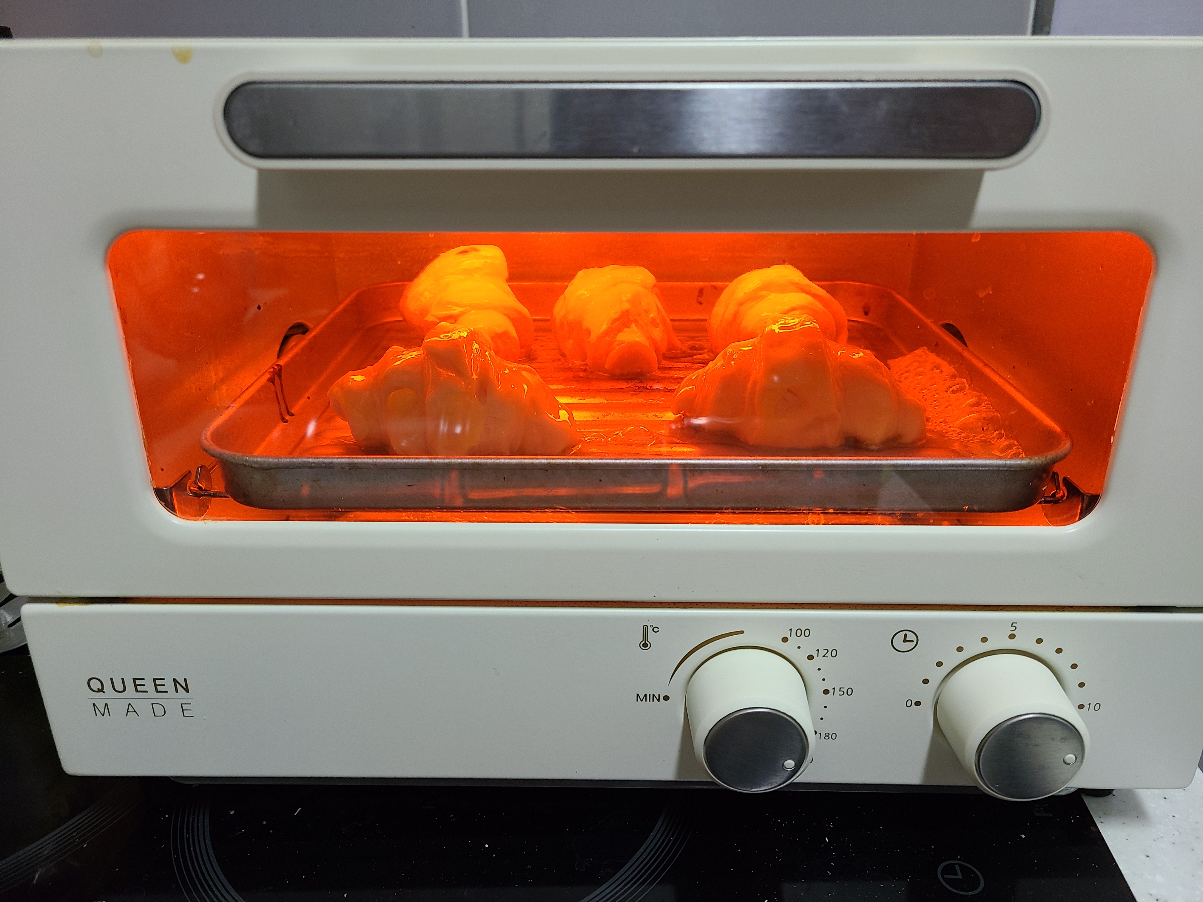 그러나 막상 열선이 가까운 위에는 잘되는데, 바닥에 붙은 쪽은 잘 안 익어서 요리할 때 뒤집어줘야 하는 단점이 있어요.