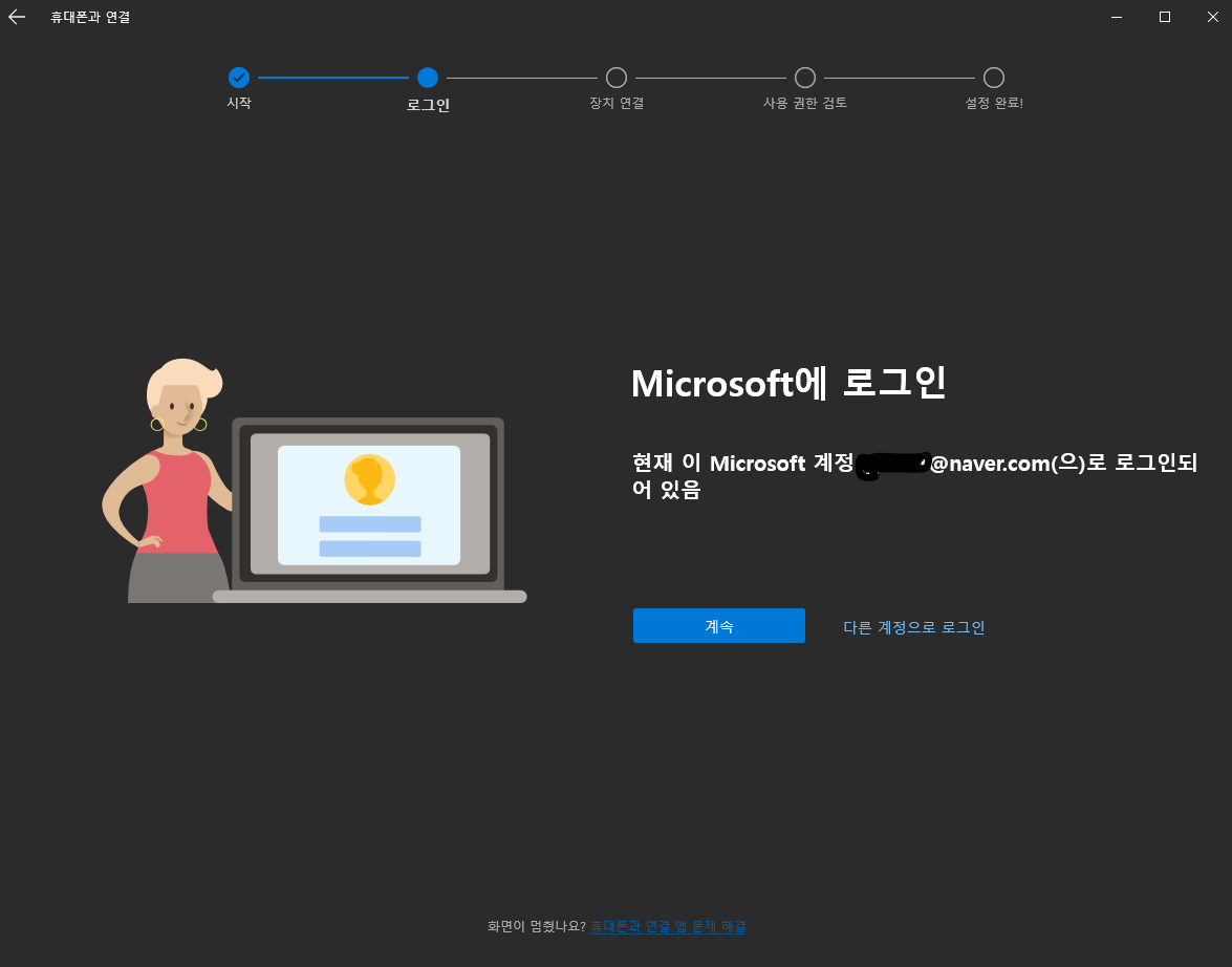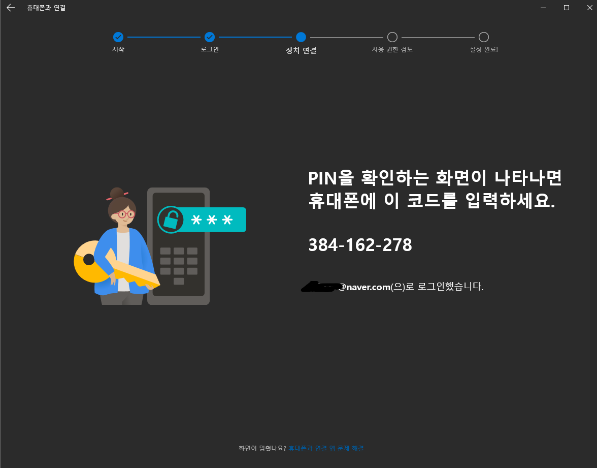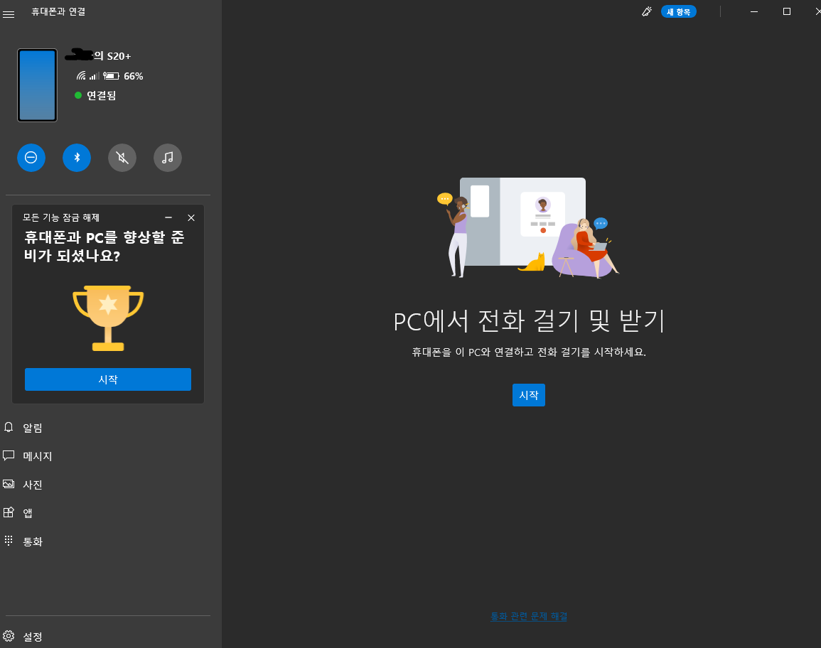 그럼 컴퓨터에서 휴대폰과 연결 앱이 실행될 것입니다.