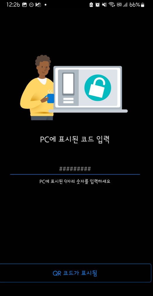 자 이제 핸드폰에서 위의 9자리 코드를 입력해줍니다.