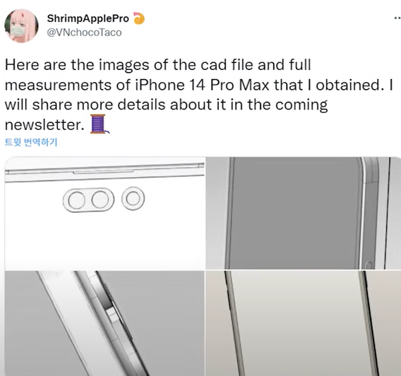 오늘 ShripApplePro가 트위터를 통해 아이폰14 프로 맥스의 세부 CAD 도면을 공개했습니다. 이번 디자인 도면과 함께 사이즈도 상세히 공개했는데요,