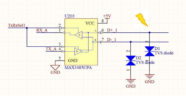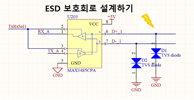 위 예시는 전형적인 ESD 보호회로이다. TVS를 활용하였다.