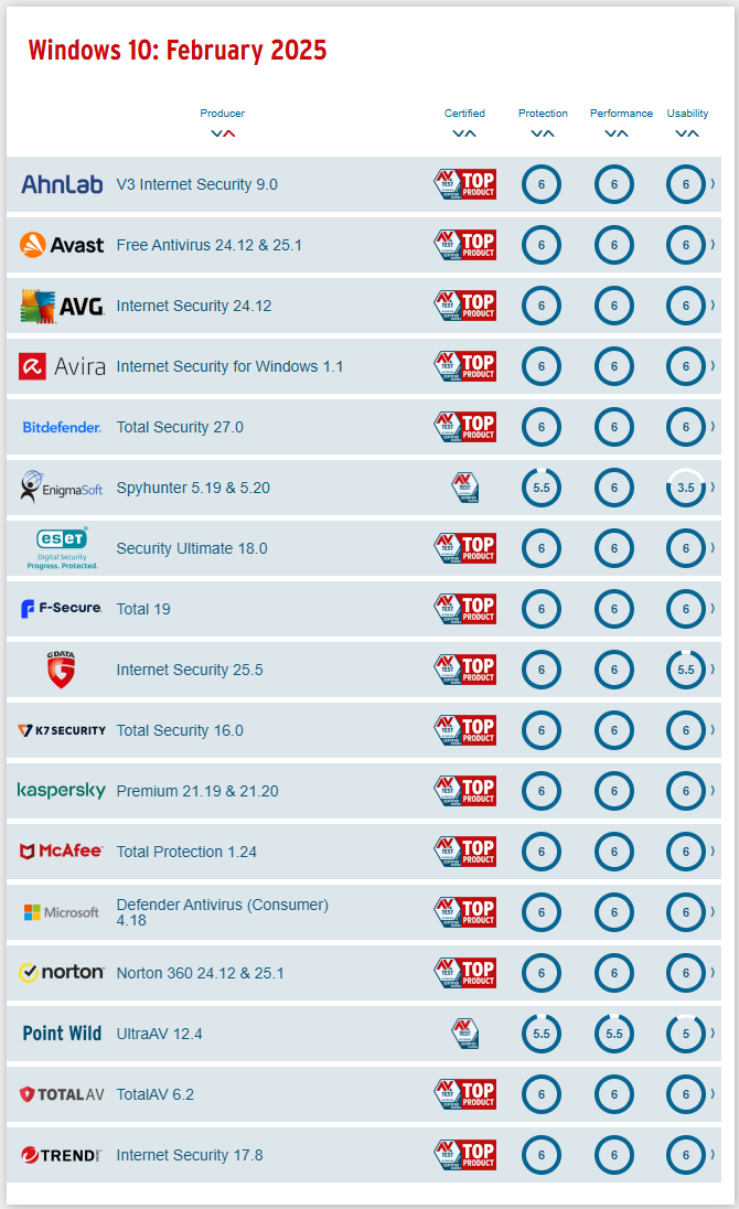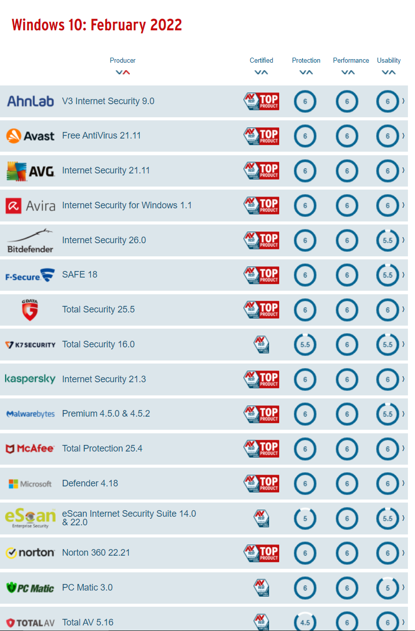 The current tests of antivirus software for Windows 10 from April 2021 of AV-TEST, the leading international and independent service provider for antivirus software and malware.