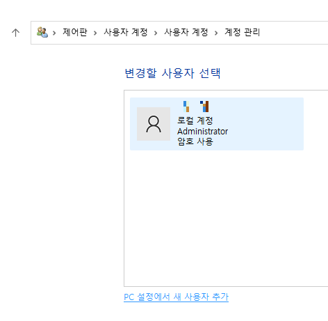 다시 한번 사용자 계정의 계정관리에 들어가 줍니다.
