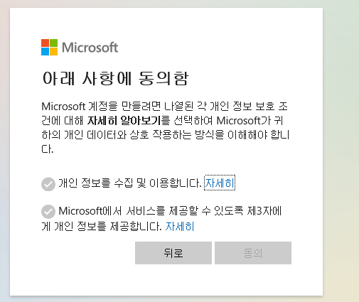 여기서 동의가 안 눌리는데, 자세히를 클릭해서 일일이 다 봐주면 동의 버튼이 활성화됩니다. 그렇게 동의를 해주고 나서,
