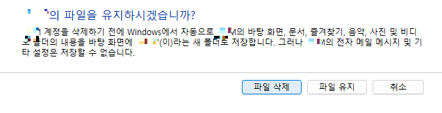 2. 원래 있던 한글 이름 계정 삭제하면서 파일 유지 선택