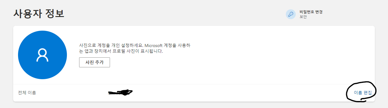 2단계. 마이크로소프트 홈페이지에서 사용자 이름 변경